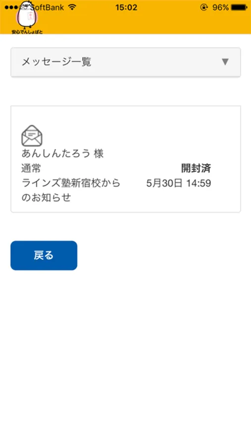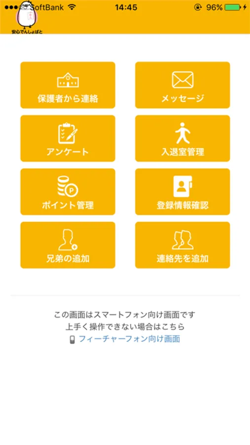 入退室お知らせ・メッセージ配信サービス「安心でんしょばと」の保護者向けプッシュ通知型アプリです。