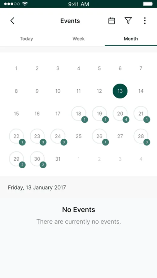 Calendar: The Calendar provides carers a personalised view of what's coming up for the day or in the future.