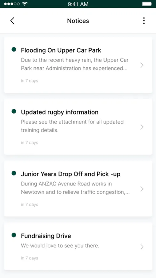Timetable: The timetable feature pulls information dynamically from Edumate so that careers can view their child's class schedule.