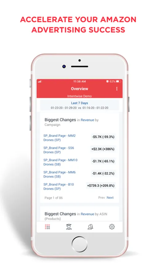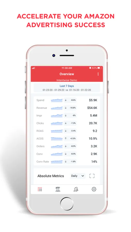 Never miss a beat. Use this app for free to monitor your key Amazon advertising metrics across your accounts on the go.