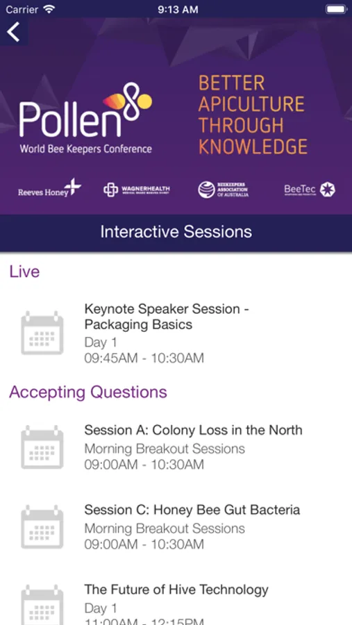 - Plus (when included) networking features, live polling and Q&A for sessions
