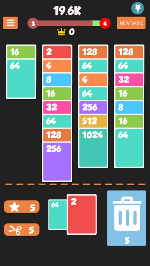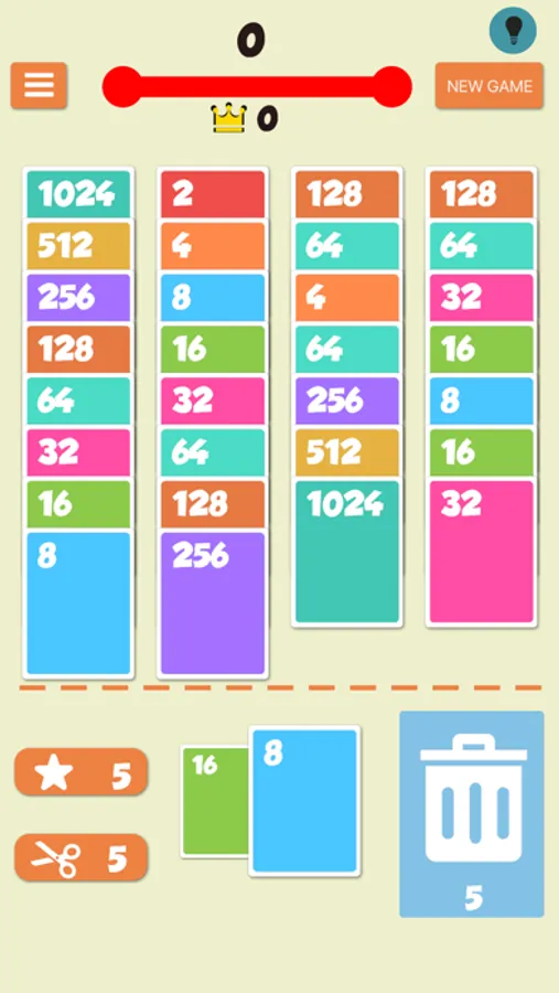 Once two same value cards were merged, they will add up into a new card.