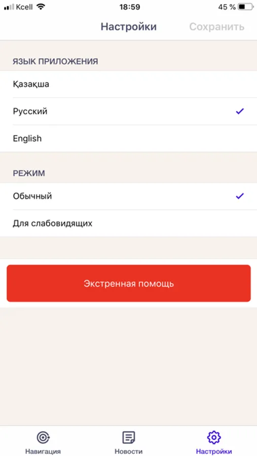 - отдельным режим работы навигации для слепых и слабовидящих людей;