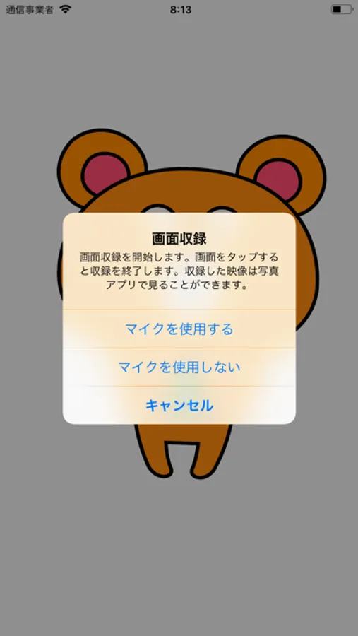 iPhoneのフロントカメラで顔や表情を読み取って、その通りにTDCベアーを動かします。画面収録機能でTDCベアーの動きとマイクから収録した音声を動画として保存することができます。また、作成した動画は他のSNSアプリを使って家族や友達に送信することができます。