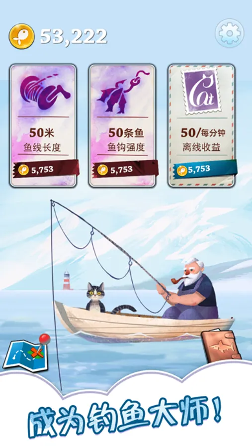 *出售鱼类以赚取更多的金币,增加您的储蓄来升级您的渔具