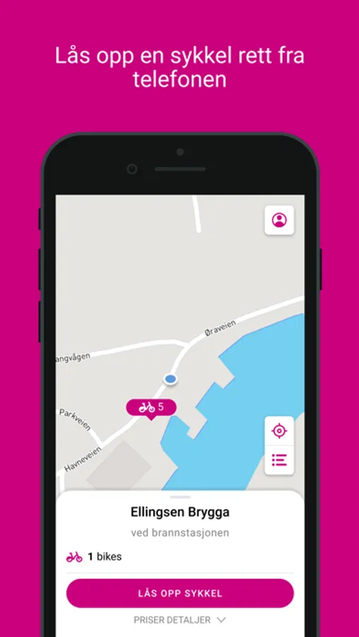 Bruk telefonen din til å låse opp syklene, som er å finne på øya. Med appen kan du kjøpe et abonnement som passer for deg, finne sykler nær der du er, og snakke med oss om det skulle være noe.
