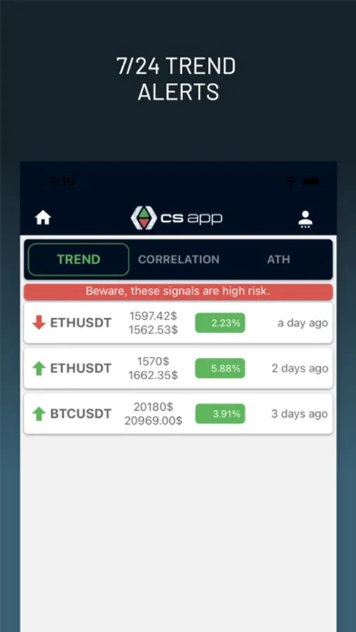 Whether you think investing swing trading, scalp trading or day trading; your investments will be more profitable with this free crypto signal application.