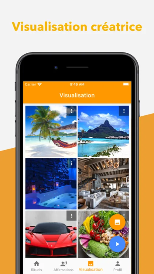 Vous pouvez ainsi méditer sereinement, puis lancer votre visualisation avec votre série d'images qui défilent, ou encore répéter vos affirmations que vous mettez à jour chaque matin.