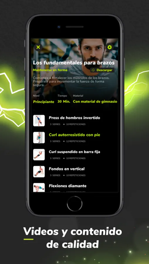 - With explanatory videos, the muscle groups involved and a detailed data sheet for each exercise.