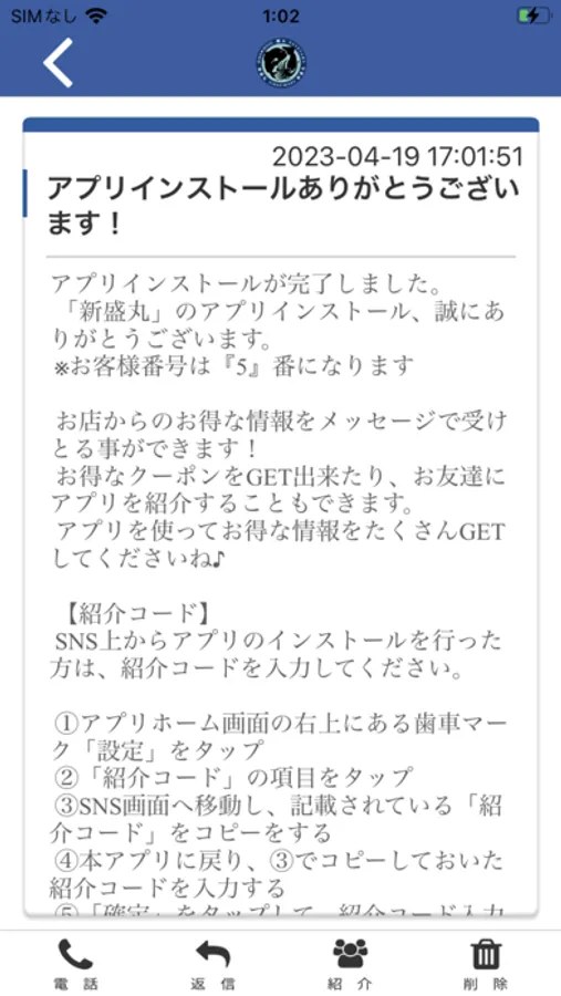 新盛丸のアプリをSNSを通じてお友達に紹介する事ができます。