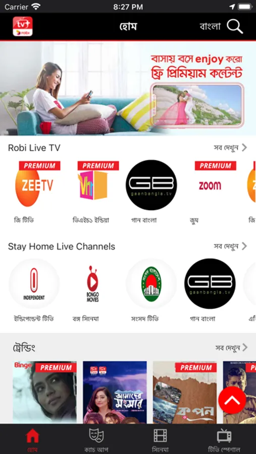 1. Watch live TV channels at your convenience with catch up facility. If you miss or remain busy during your favourite show, watch it later on Robi TV+. (within 24 hours, on Independent Television, Probashi Bangla TV, Boishakhi, and Ekattor channels only)