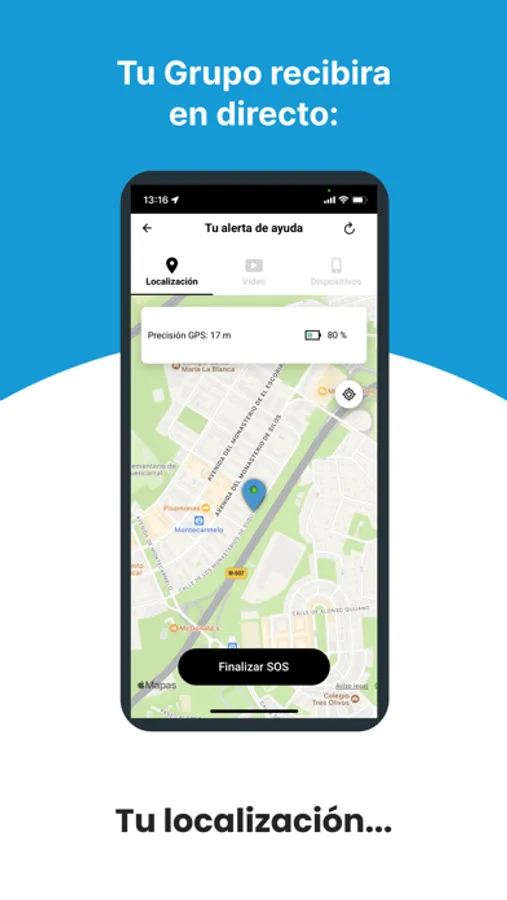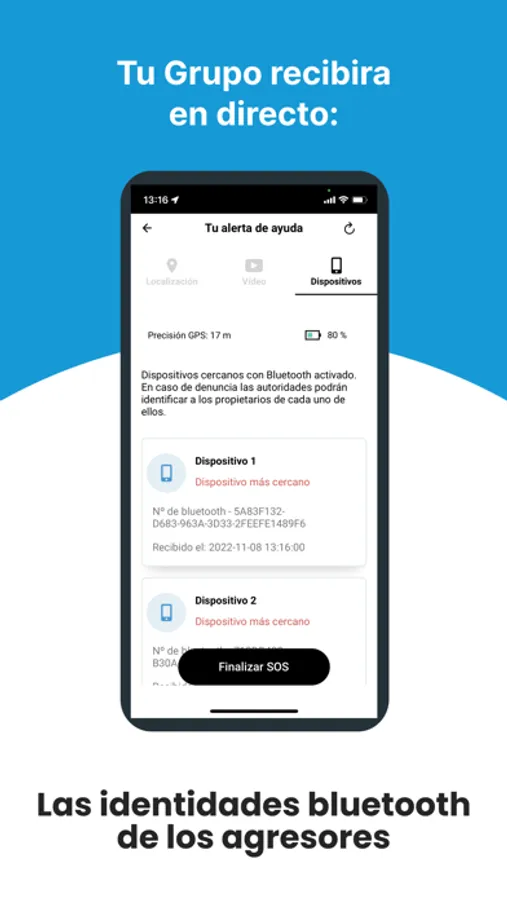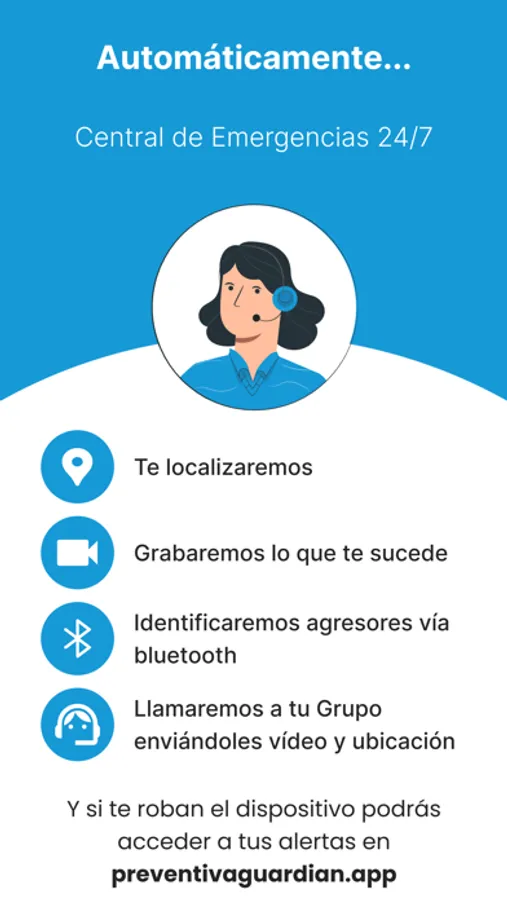 4-Inmediatamente llamaremos a tu Grupo de Seguridad enviándoles tu ubicación, el vídeo de lo que te sucede y las identidades bluetooth de los agresores en tiempo real