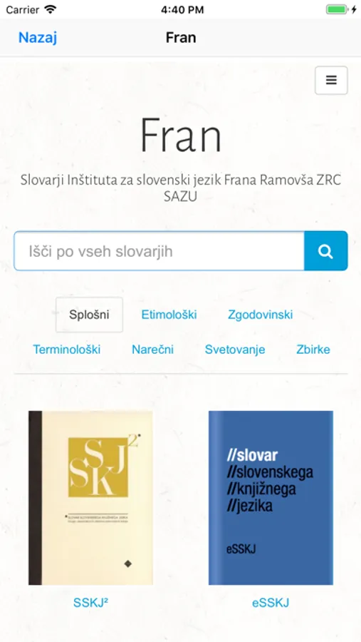 FRAN is a dictionary portal of the Fran Ramovš Institute of the Slovenian Language, which offers users the essential language manuals for Slovenian.