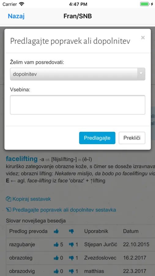 Fran is interactive. Through the portal you can suggest new words to be described and vote for them, ask linguists for linguistic advice or suggest additions or corrections to existing dictionary entries.