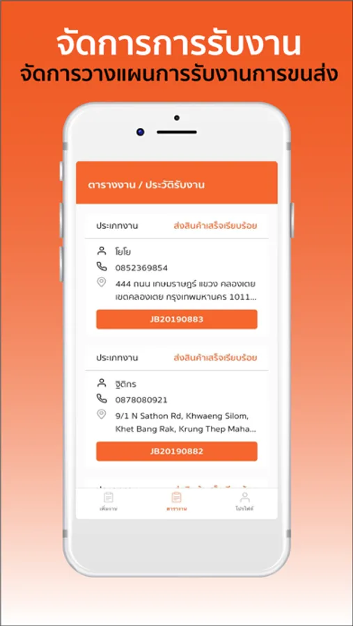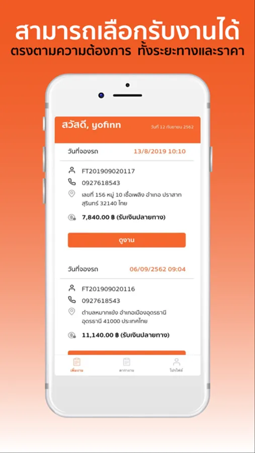 - การติดต่อรถกระบะและที่อยู่ปลายทางผ่านใบสมัคร