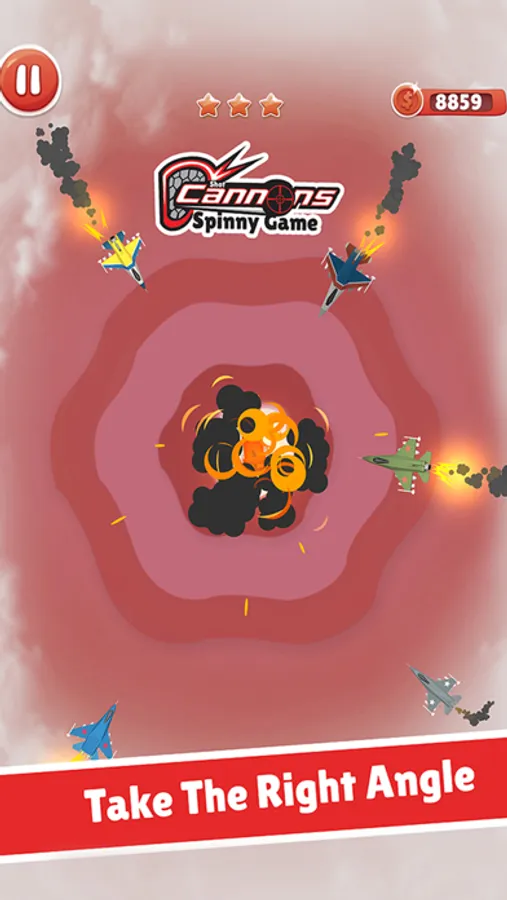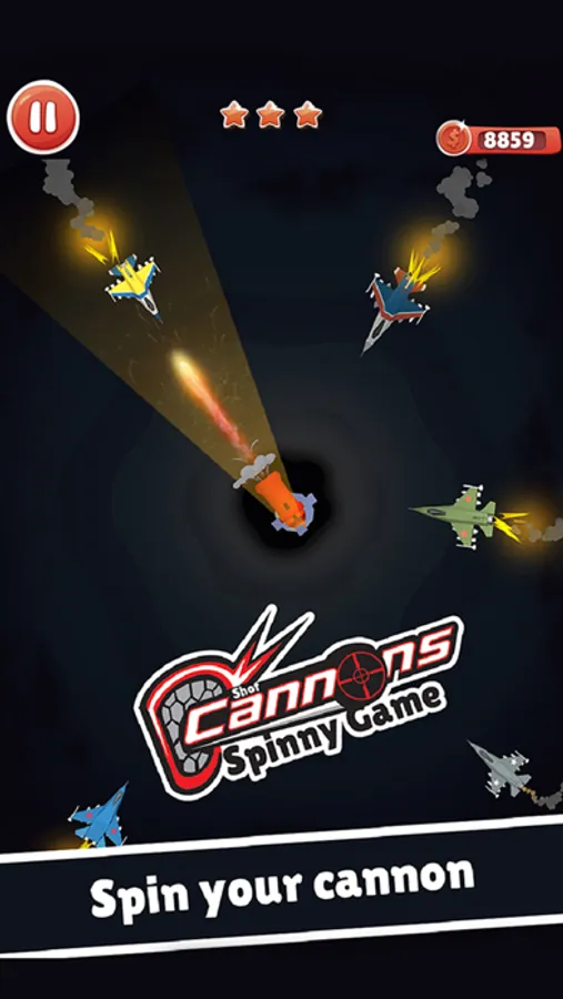 Cannon battle war will be one of your favorite spinny game you will love to play. Cannon shot are more like neon blasts on fighter jets. Fighter jets will shoot your cannon too, You have the best cannons from world war 2. FLy jets have their powers and you have only limited cannon shots to take the revenge from these peace offenders coming o your border and arena. Aim at right fighter jet tap at the right moment and fly your cannon bomb on these flying plane fighters. See them falling and their destruction in this time management Cannon War Spiny Game.