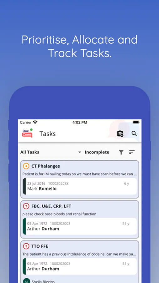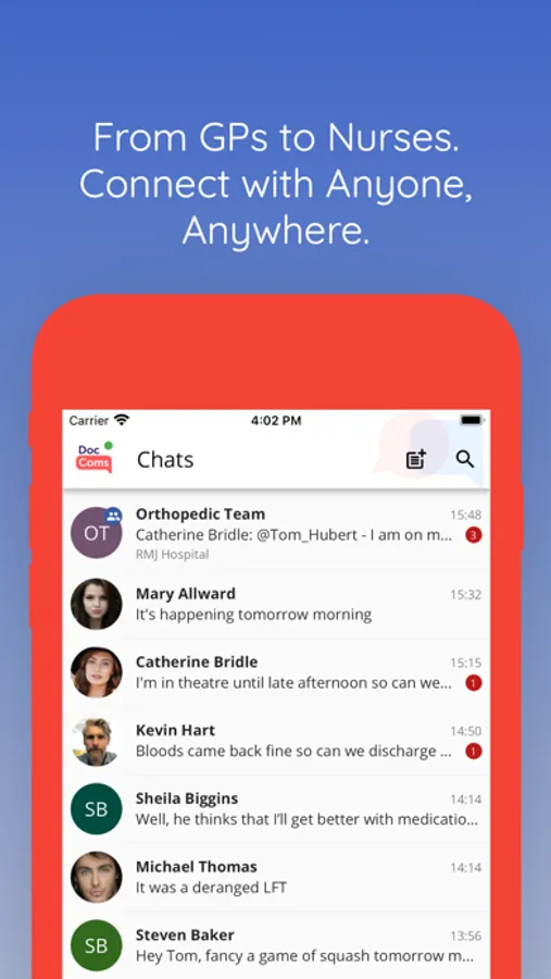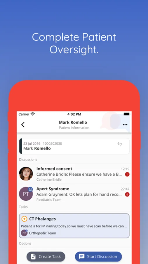 - A complete clinical workflow tool underpinned by familiar chat, for everything from patient discussions and lists, to delegation and tracking of clinical tasks.