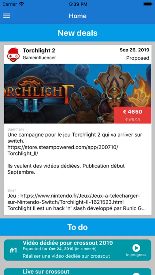 With WizApp you stay in touch very easily with the Wizdeo team, you can view, accept or refuse contracts that are offered by Wizdeo.
