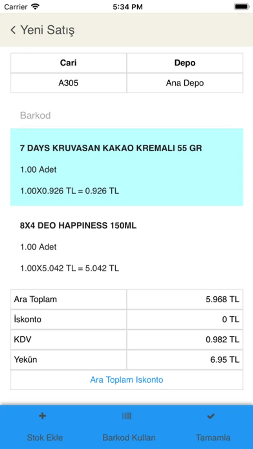 * Bluetooth veya kablolu barkod okuyucuları mobil cihazınıza bağlayarak - veya mobil cihazınızın kamerasını kullarak barkod okuma hızında alış-satış yapabilir, depo sayımı yapabilirsiniz.