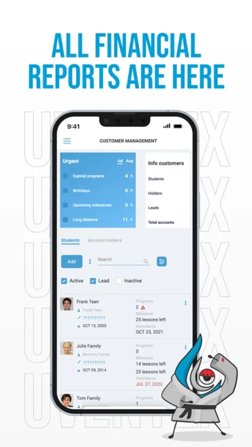 Uventex Studios application is for all users of Uventex Studios, including studio owners, staff, parents, and students. The app provides quick and convenient access to all features you need.