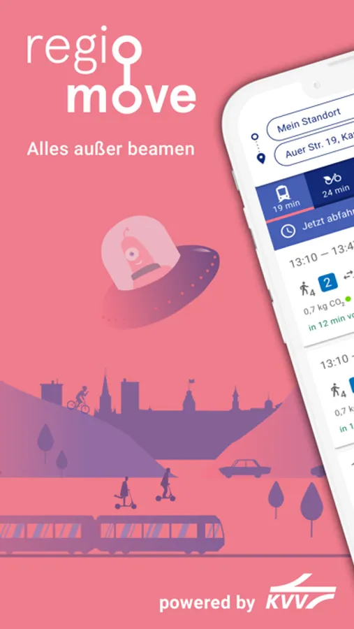 regiomove ist nicht nur eine App für klassische Nahverkehrsmittel, sondern vereint auch alternative Sharing-Angebote wie KVV.nextbike und Stadtmobil in einer App. Außerdem können Sie in der App die KVV.homezone ausprobieren, den neuen individuellen Monatstarif des KVV. Damit sparen Sie sich den umständlichen Wechsel zwischen verschiedenen Apps und die Kontoregistrierung bei vielen verschiedenen Anbietern.