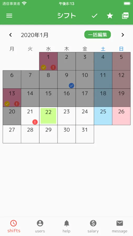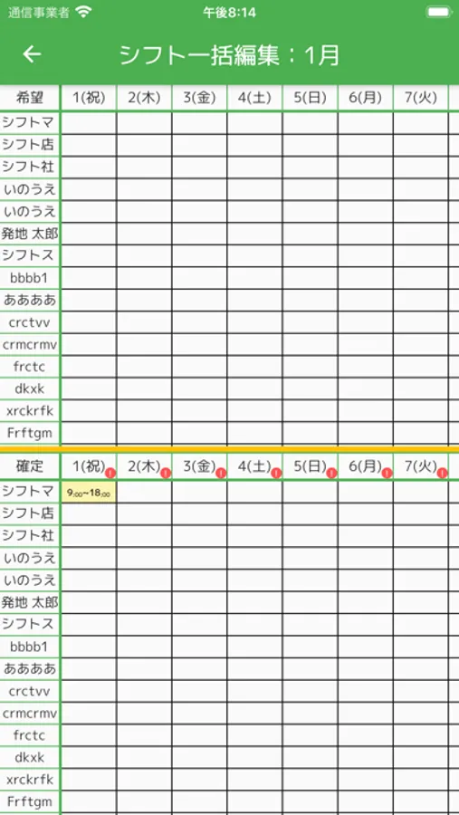 希望シフトと確定シフトによる、スタッフと店長さんの相互確認シフト管理