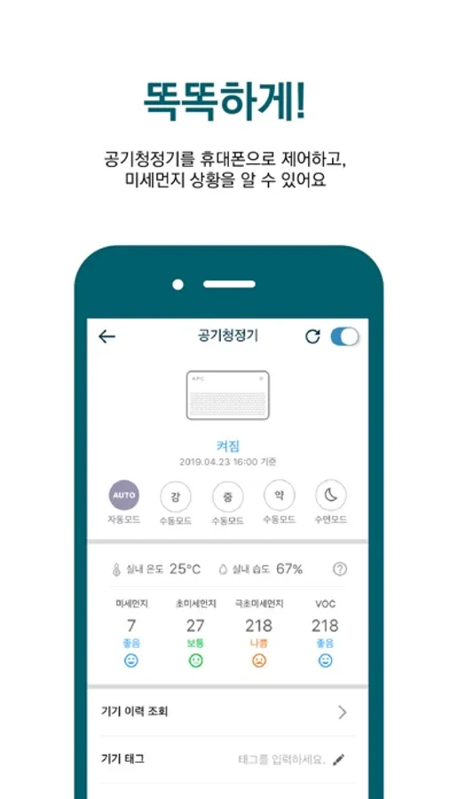 ○ 에어닥터를 설치한 공간의 미세먼지 등 실내공기의 상태 확인 가능