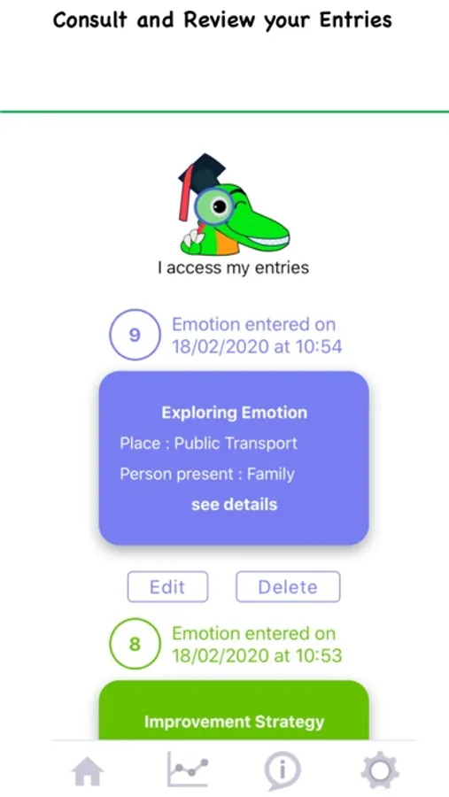 "Learning From Emotions" is your companion, available immediately and at any moment, it encourages you to record your emotions/reactions whilst you are still conscious of them so that you can later reflect upon them when it is most convenient for you.