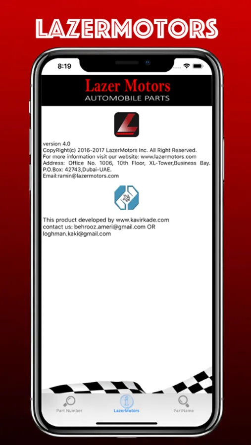 lazerMotors is a company which produce original automobile parts, this app help LazerMotors customer to inform them that which part name is belong to partNumber and reverse.