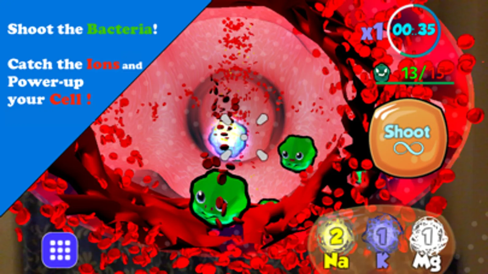 In the 3D game you have to choose your Champion among the I.S Cells, and immerse yourself in an infinite blood vessel, defending it from the Bacteria.