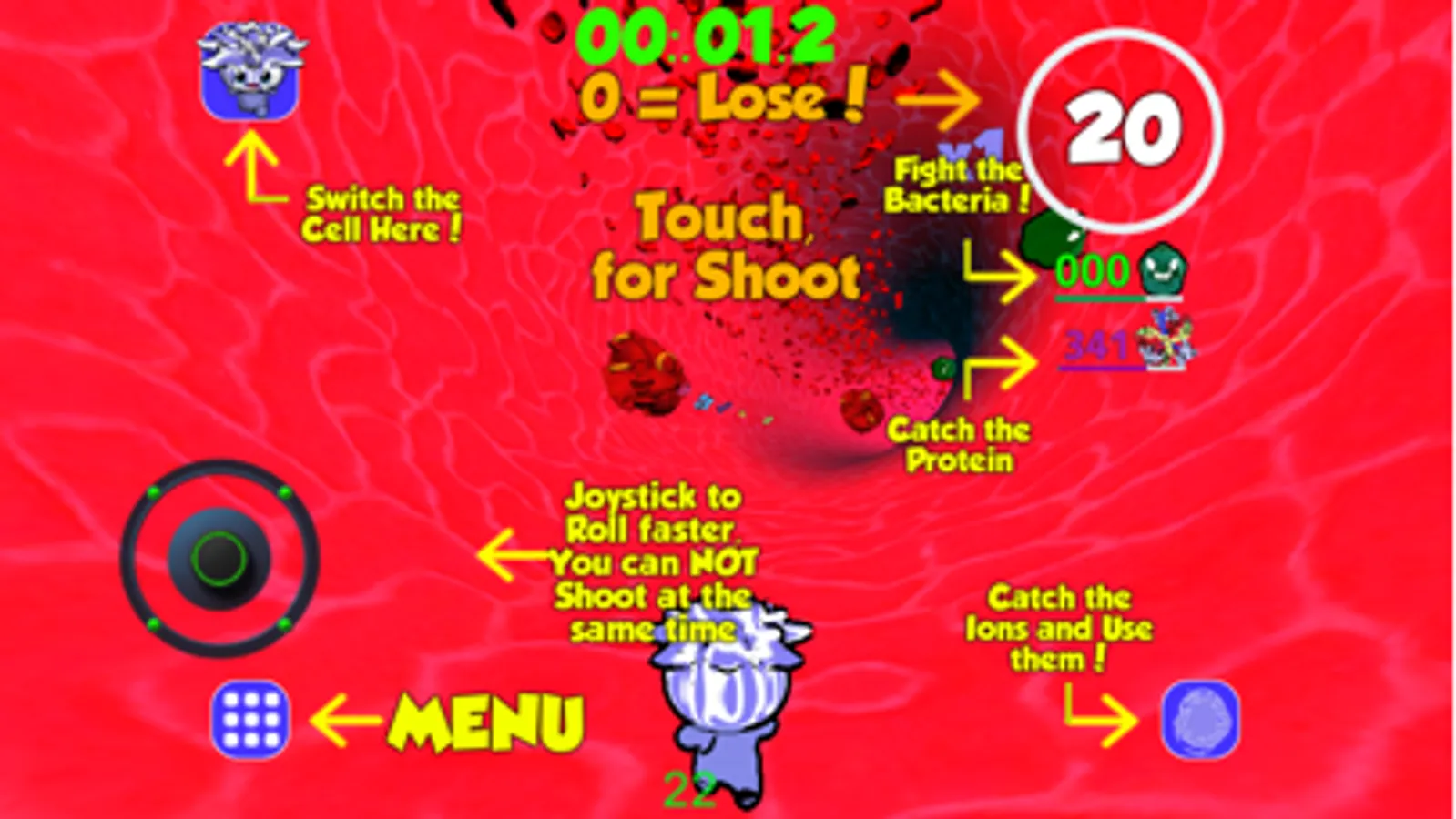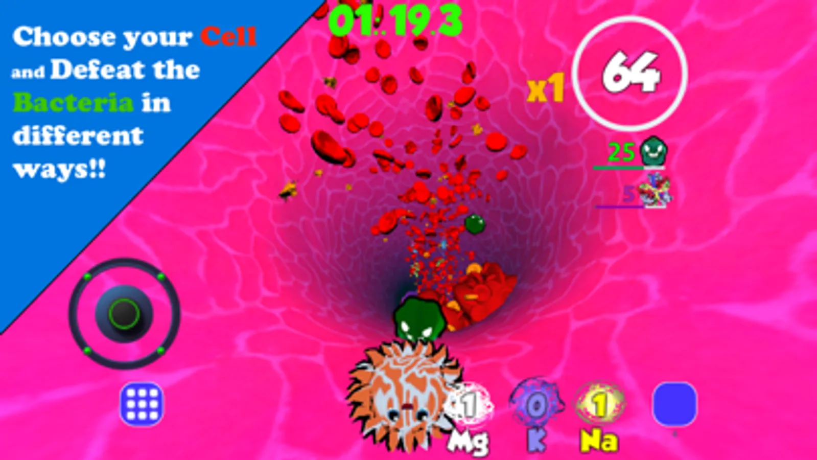 You have to defend your room against the attack of the Bacteria, and your Cells will help you in this mission.