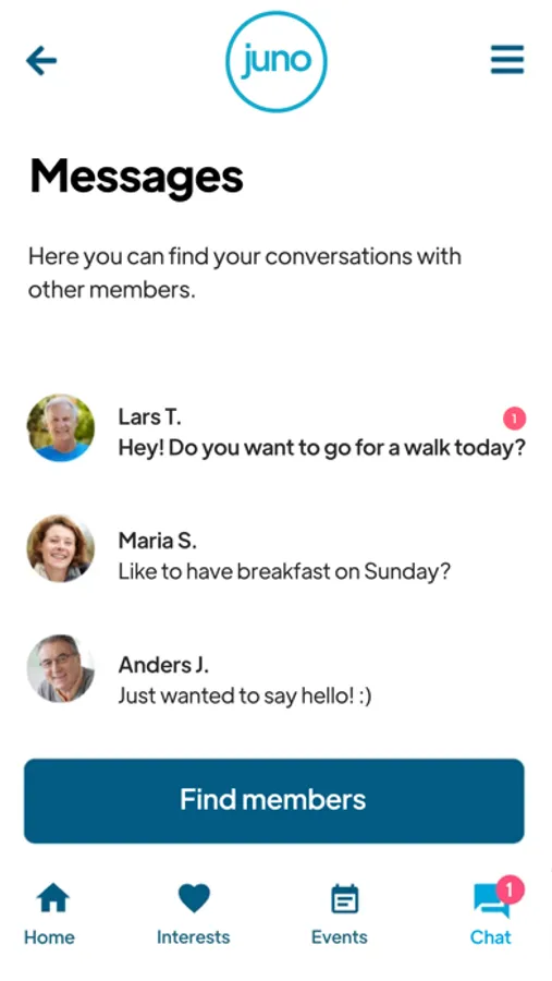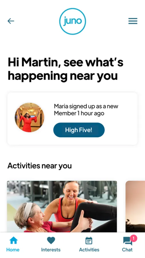 Juno’s easy-to-use app is ideal for people aged 60+ where you meet like-minded people, find fun and exciting local activities, stay healthy and grow your network.