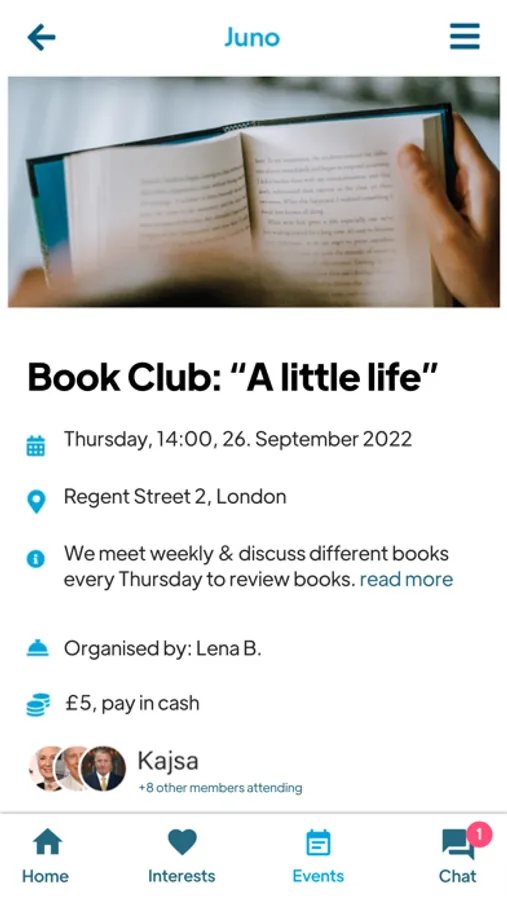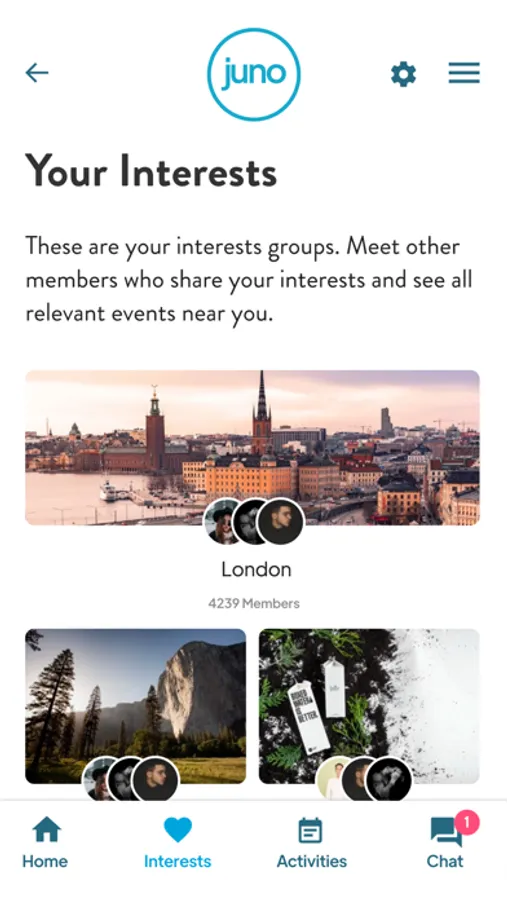 Get connected with local groups and events, based on your interests, so you can meet new people and try new things. Use Juno to pursue and share a passion, explore your city, build your social network or just spend time browsing through inspiring content.. Download the app to discover the Junoverse. .