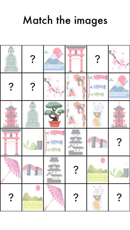 Match the images. To do this, click on the question mark and the image will appear, memorize and search for the couple. A timer is available to see how much time you need to overcome the challenge