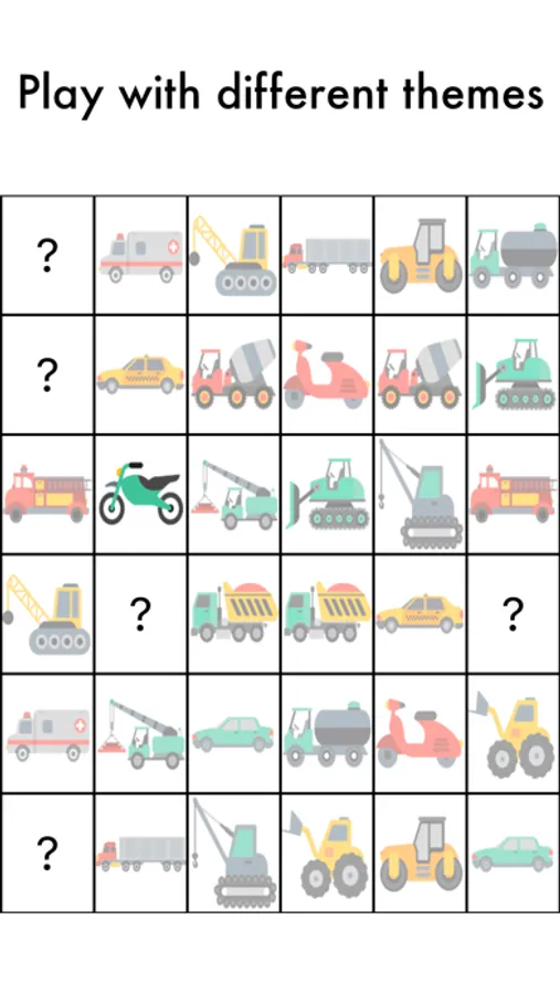 Can play with images of Animals, Travel, Fruits, Flags, Vehicles, Japan and Spring. There are 2 levels: