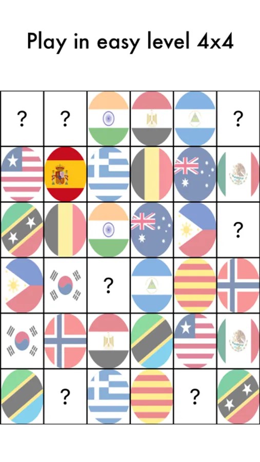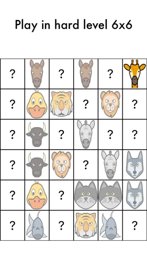 Hard → Matrix of 6 x 6, 18 pairs to find.