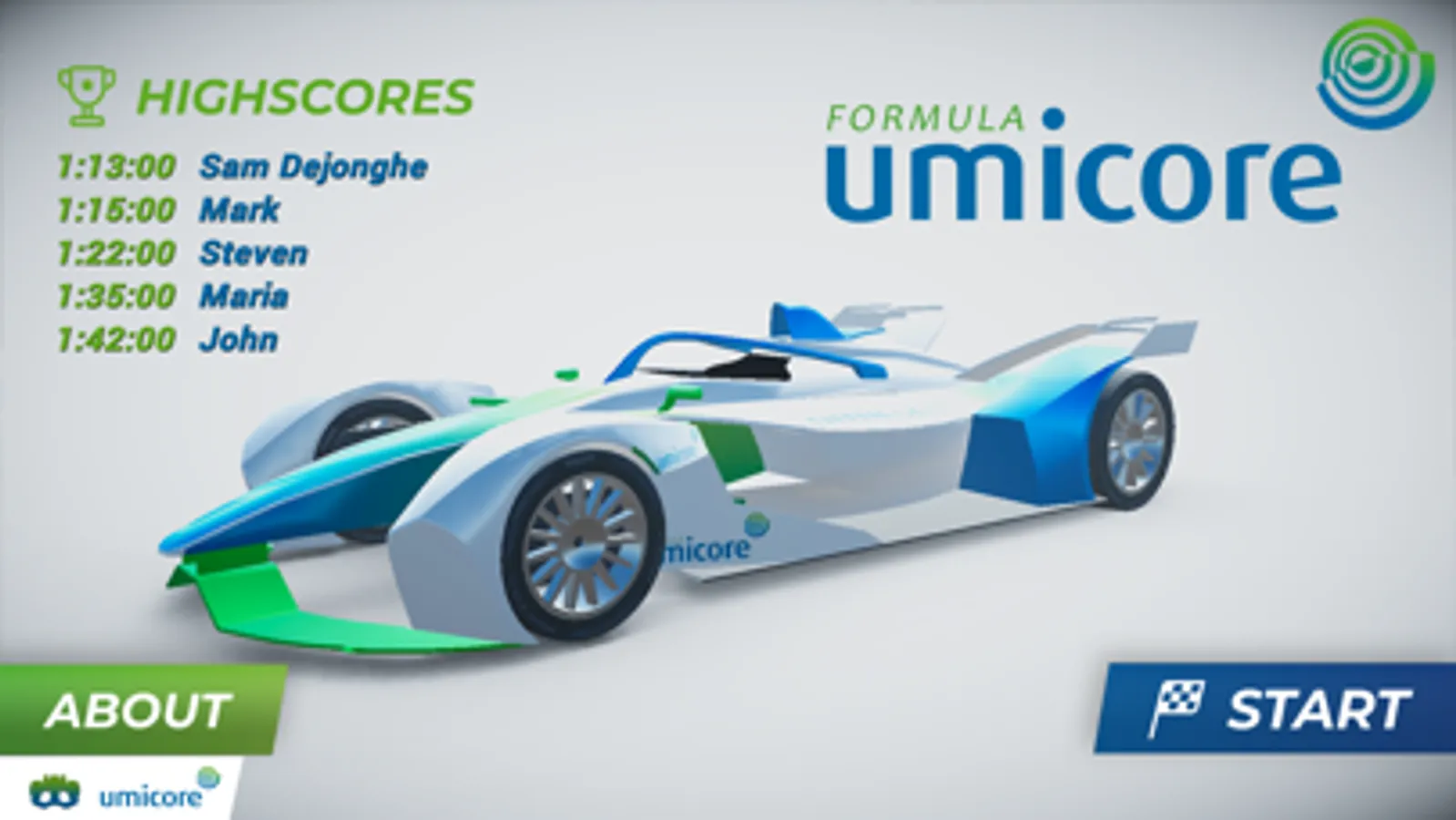 Race against professional racing driver Sam Dejonghe at the Umicore facilities in Olen (Belgium). Find the perfect race line and collect power-ups to keep your battery charged. Good luck!
