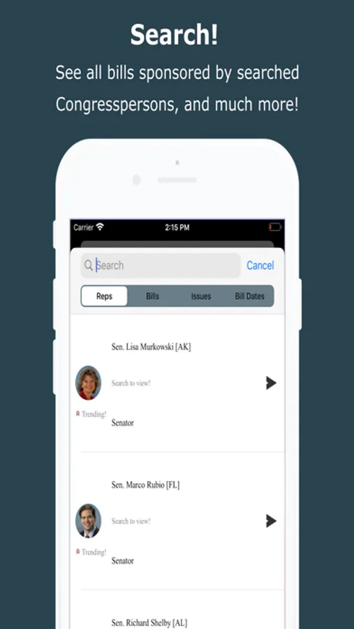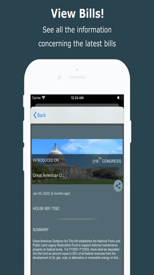 - Receive notice whenever a Congressperson votes against their constituency - Track all bills, polls, and articles and receive notifications to stay one step ahead of any developments as they happen