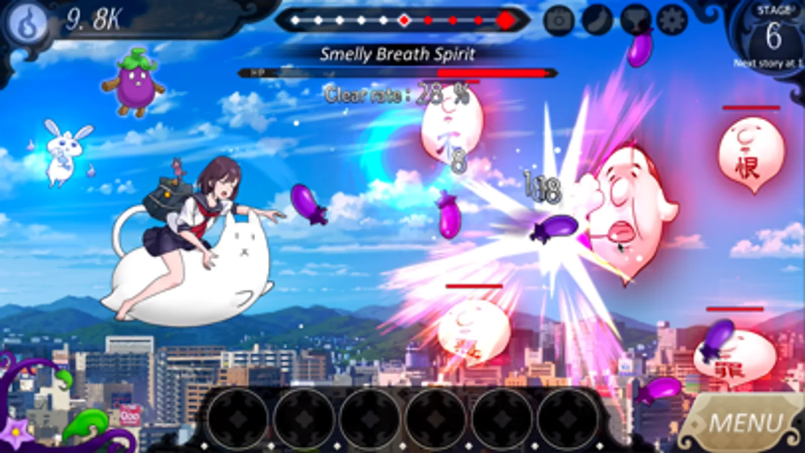 - Clear all the spirits to face the boss at the end of each level. Beat them within the time limit to get Gems and make your eggplant stronger!