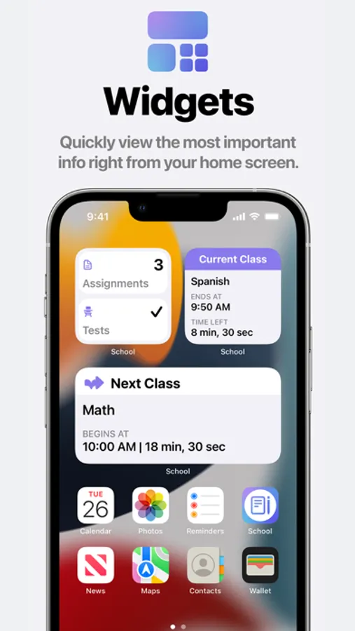 - View how many assignments/tests you have right from your Home Screen with Widgets