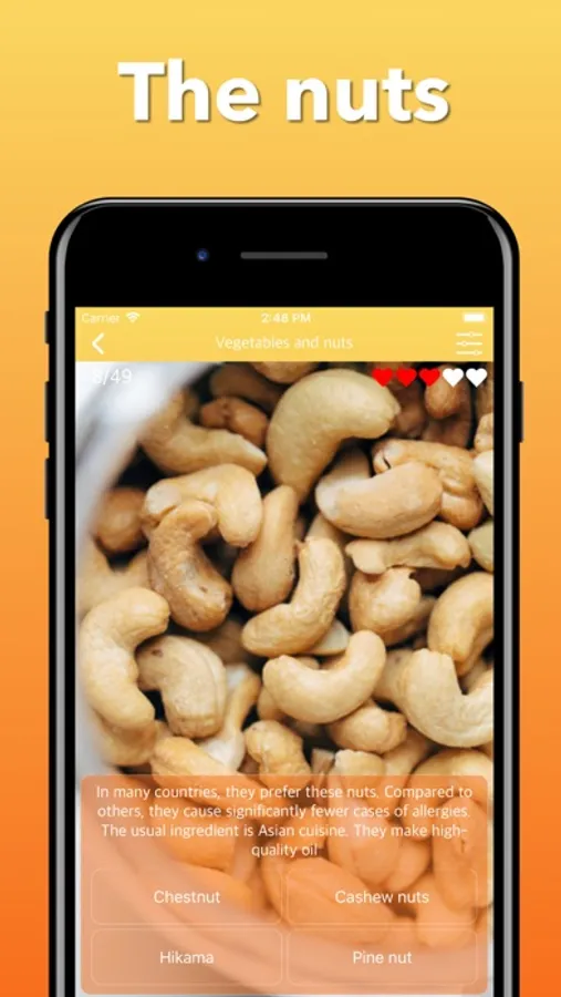 In this free application you will find 57 fruits and berries! 49 vegetables and nuts!