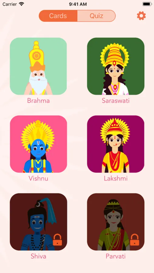 Hence, we thought, why not bring these tales to our kids in a manner most appealing to them - through their phones and tablets. With this in mind, we present to you our app - Gods of India, which brings to you popular Indian myths in the form of interactive quizzes and flash cards. Catered to both children and their parents, this app is a fun, light way to learn (as well as refresh our knowledge) about Indian mythologies. Care has been taken not to overburden the user with too many details, and to make the experience both entertaining as well as mentally rewarding.