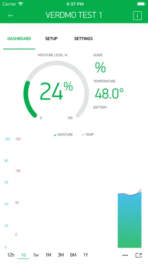 ● Dashboard - See Moisture Level, Guide, Temperature and Battery level all at a quick glance.
