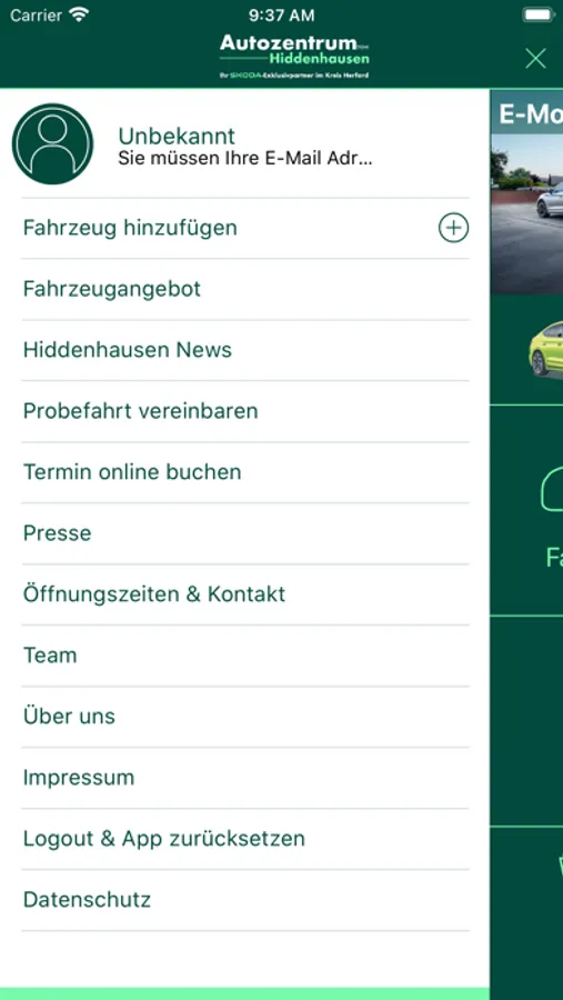 mobile Terminanfrage für persönliche Beratung und Probefahrt über den appinternen Chat