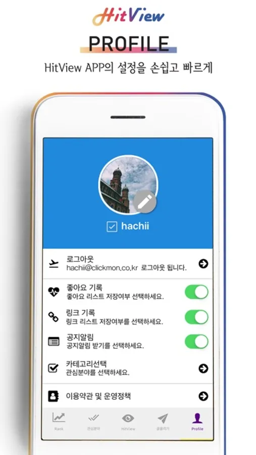 - HitView App을 이용중인 다른 회원들의 블로그 및 사이트를 구독할 수 있습니다.