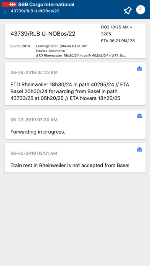 With our SBB Cargo International App, you will be continuously informed about the latest status of your trains according to your proper information needs. Indeed, you can customize and personalize your SBB Cargo International App as you wish and settle the push messages in a very simple and flexible way: