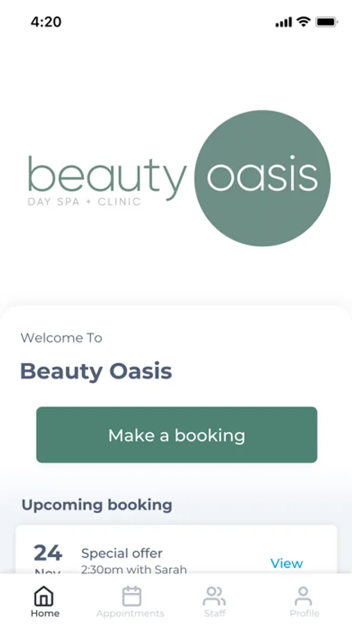 The Beauty Oasis app makes booking your appointments and managing your loyalty points even easier. You're just a few taps away from feeling good and looking great!