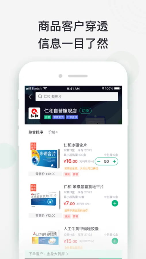 4.代下单工具:移动端一键替客户下单,减轻客户操作,缩短销售流程,提升销售成单率和销售转化效率;