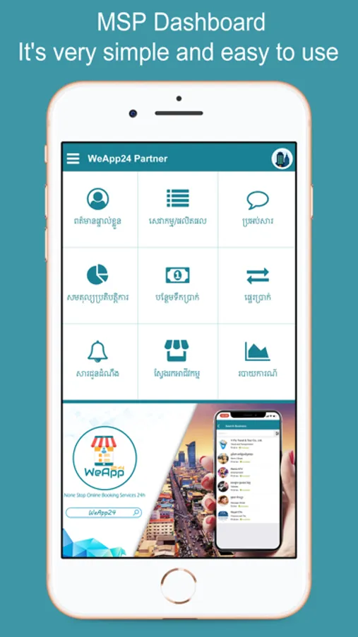 WeApp24 is an application on smartphones or as a brokerage agency that stores and provides information about the business navigation of a small, big and medium enterprise, or store about information, services or sales of other products, and the fastest gateway contacts via message chatting, calling and seeking supplier location on a digital map and making it's easy to completing requirement and easy to find the information they are the closest and can get a service or inventory purchasing more than a thousand different categories quickly satisfactory. WeApp24 provides APP services only on mobile phones and does not relate revenue allocation, cost identify, sales, commission and non-compliance policies of the supplier's internal products or services procedure.