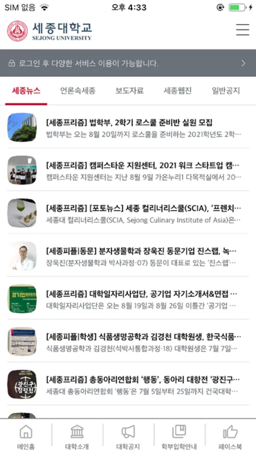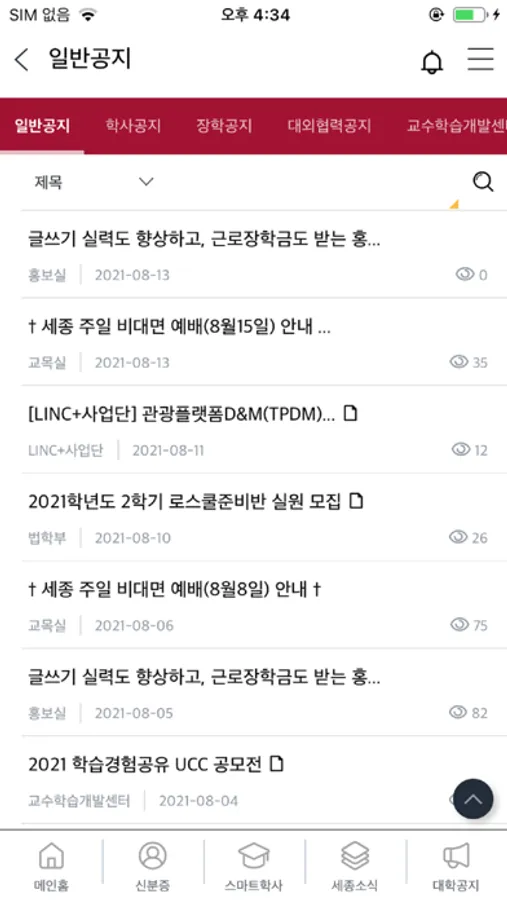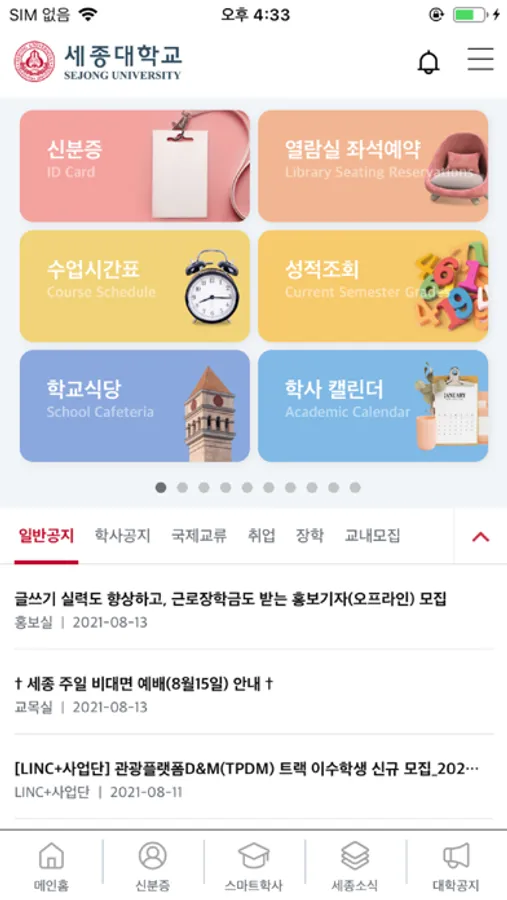 세종대학교의 모든 공지사항을 한곳에서 확인할 수 있습니다.